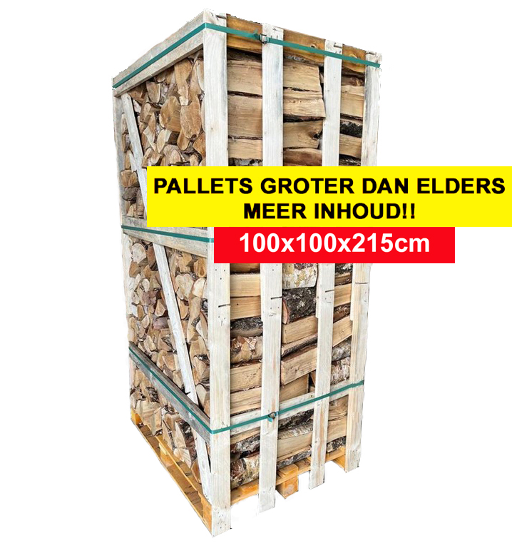 De afmetingen van onze berken haardhout pallets zijn overwegend groter dan elders